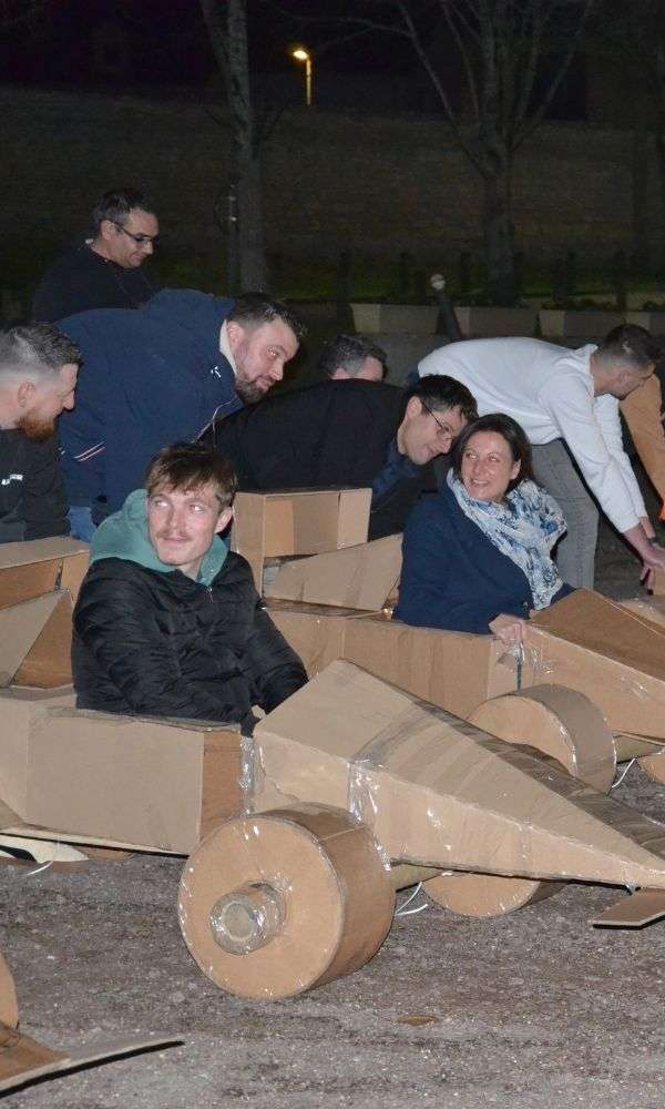 En construisant leur propre F1 en carton, les participants doivent s’organiser, se répartir les rôles et avancer ensemble vers un objectif commun.